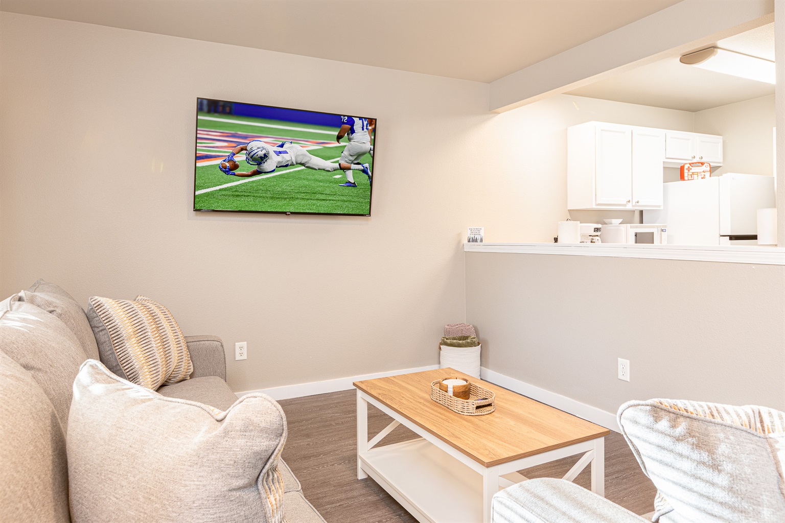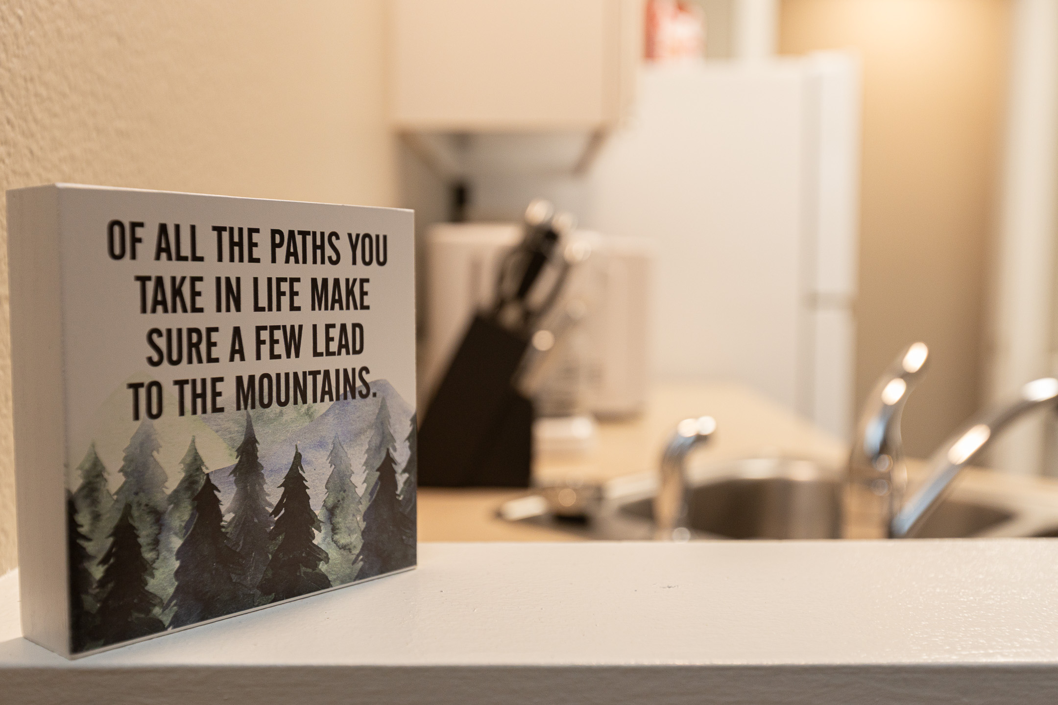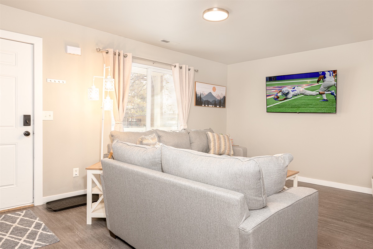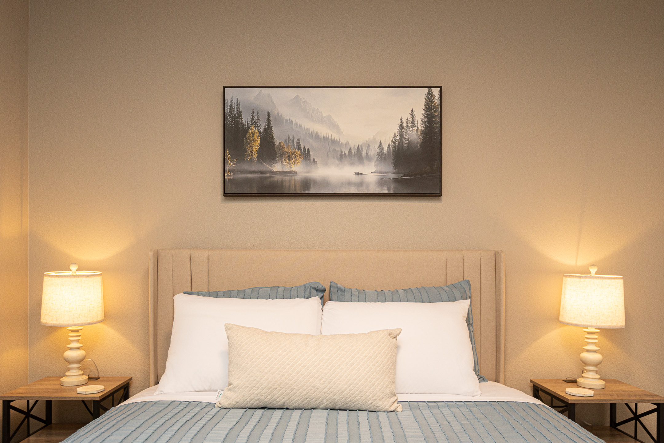 Step inside to discover woodsy textures, natural tones, and subtle lodge-style accents that bring the outdoors in. Whether you're unwinding after exploring the city or gearing up for a day of hiking, this home sets the tone for a peaceful stay.
