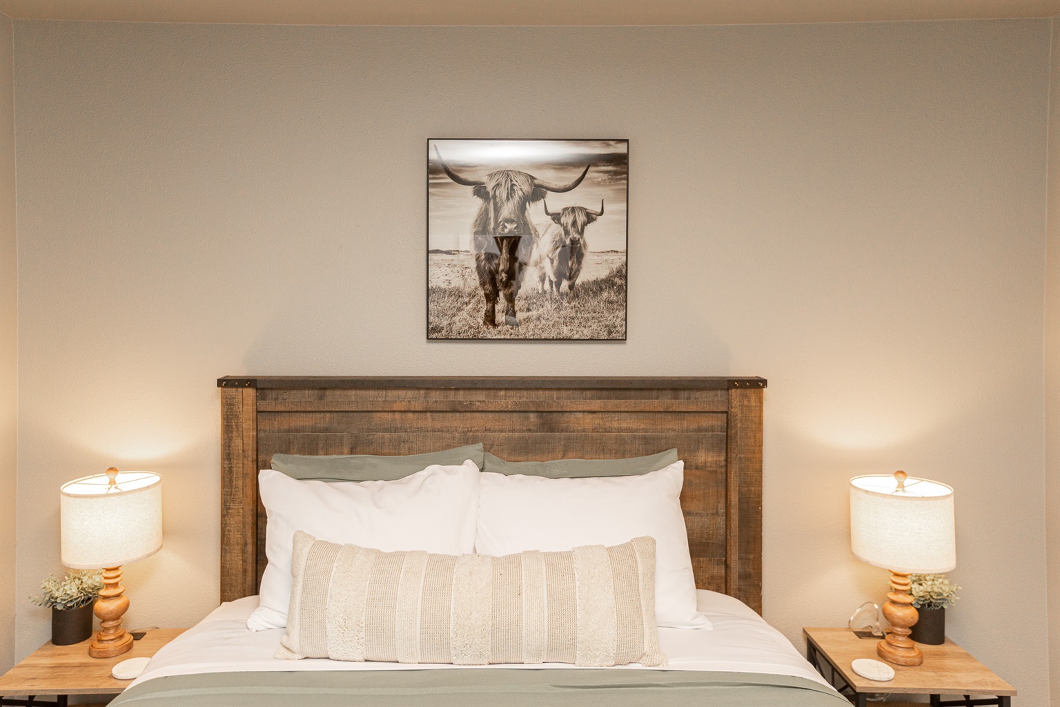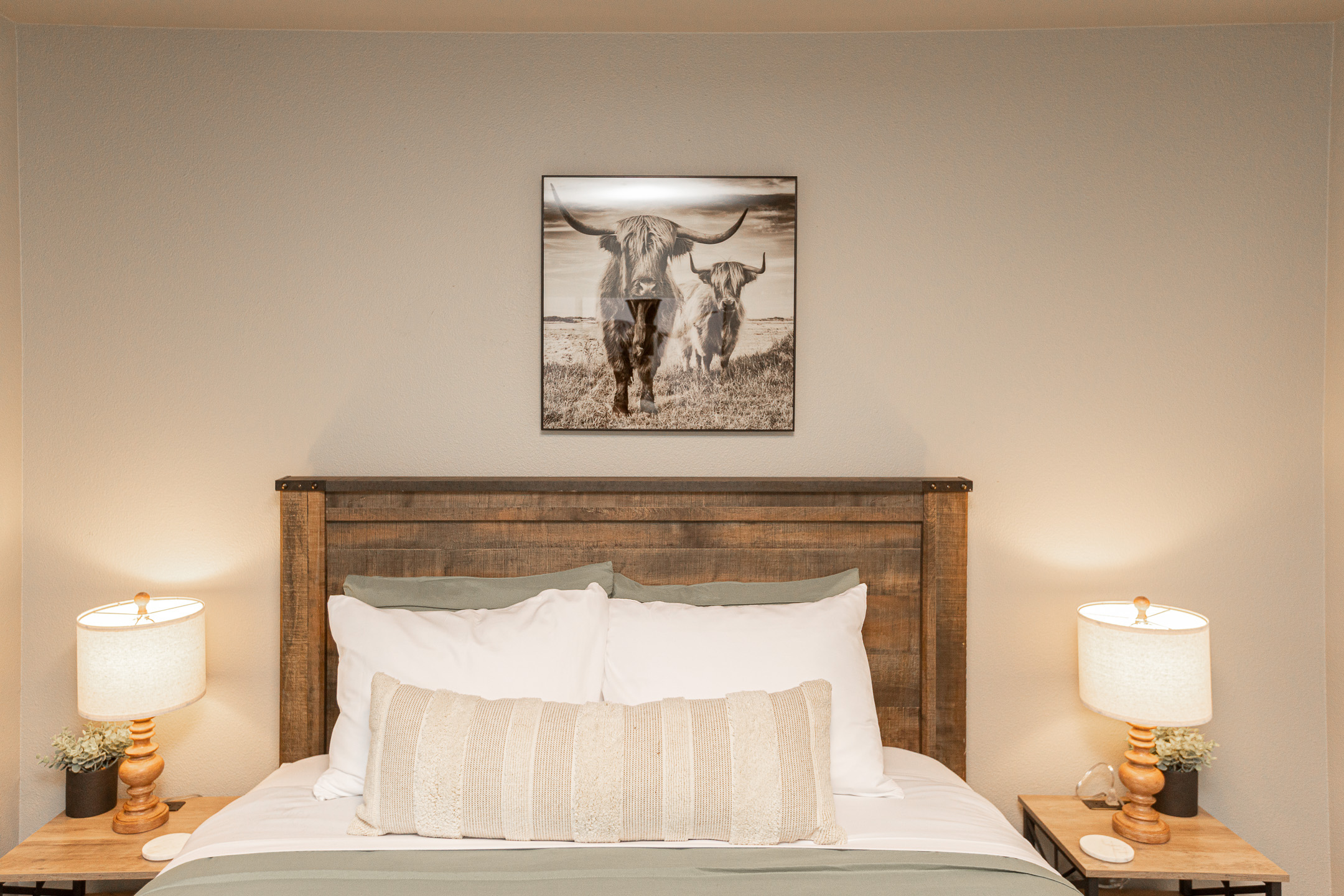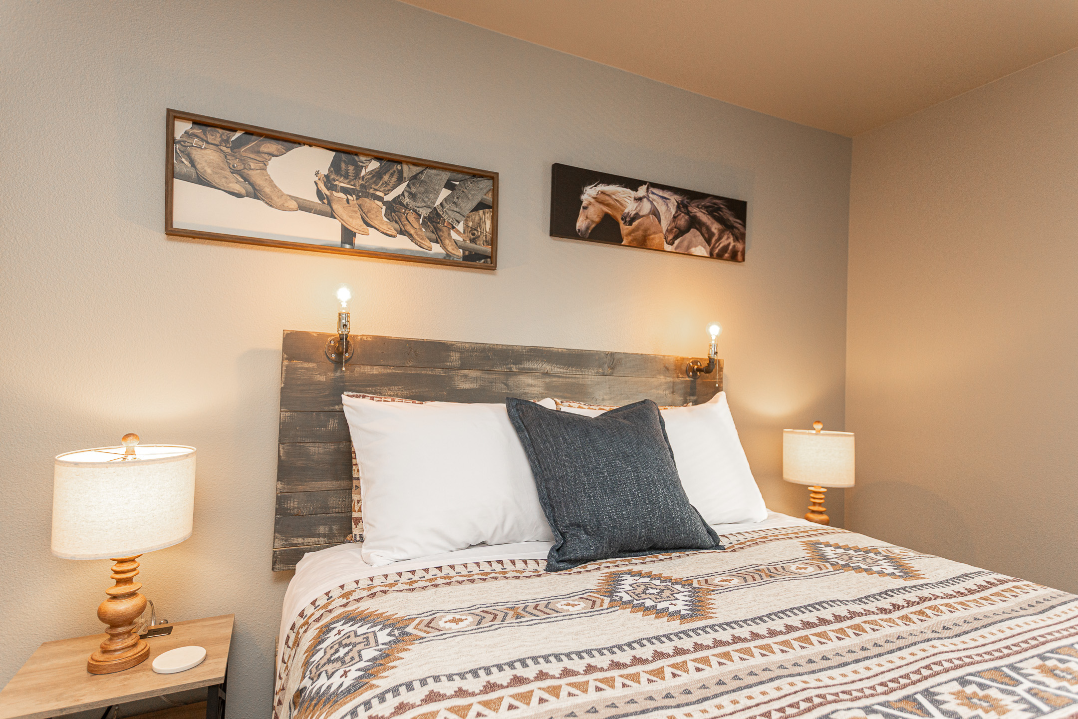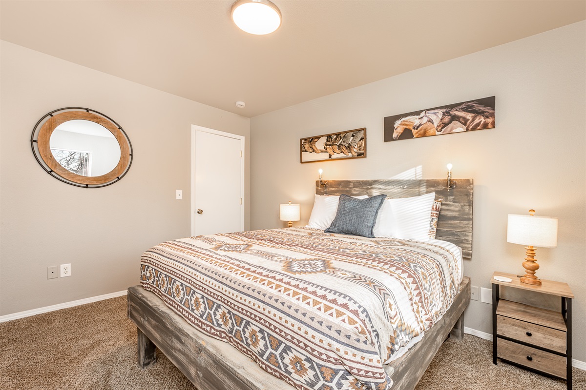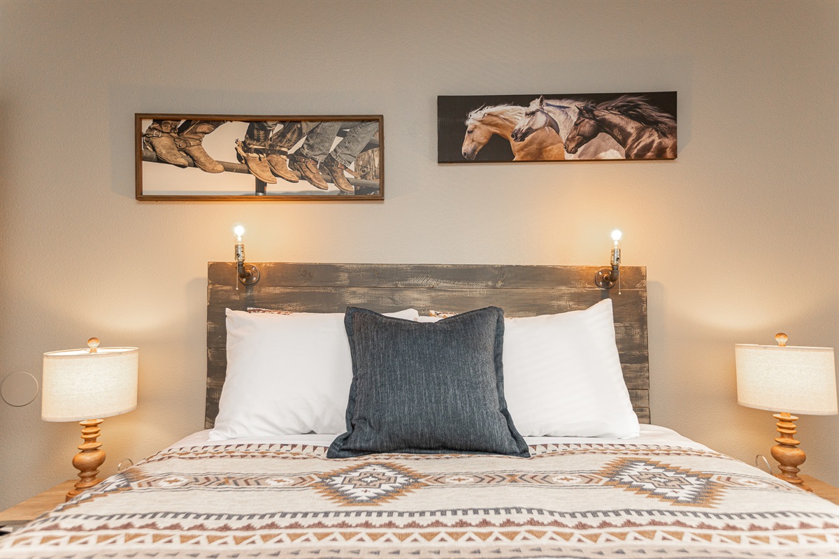 Inside, you’ll find warm wood textures and tasteful Western-inspired details that create a cozy, welcoming atmosphere. Whether you’re exploring downtown or enjoying a quiet evening in, this space is designed to make you feel right at home.